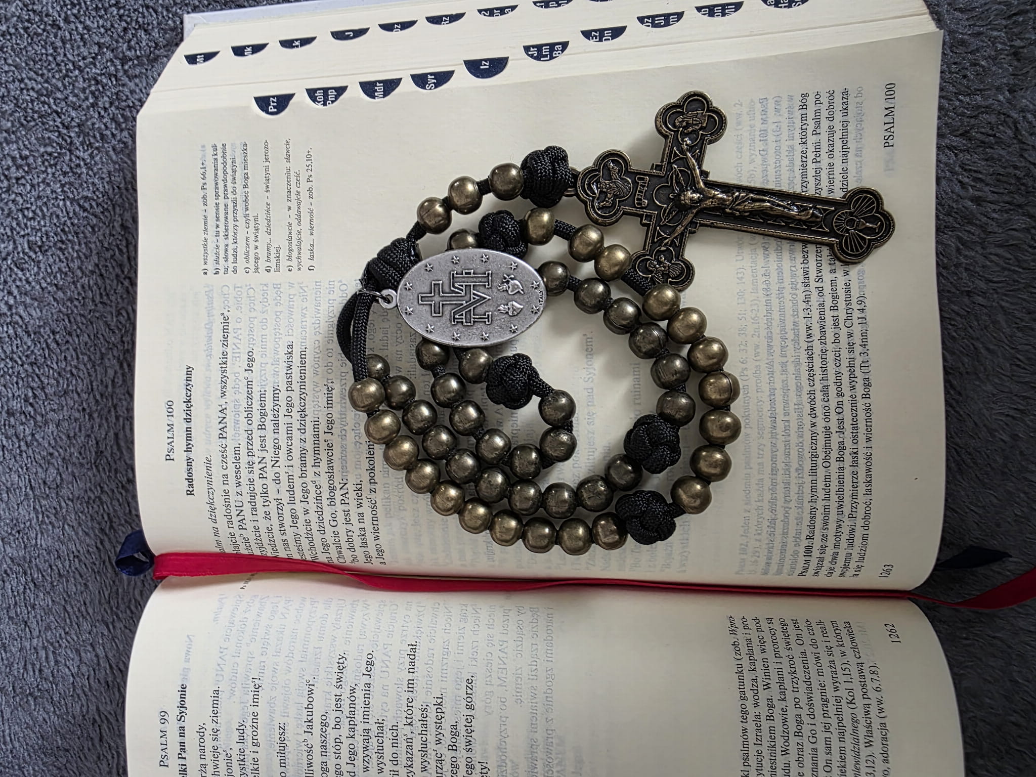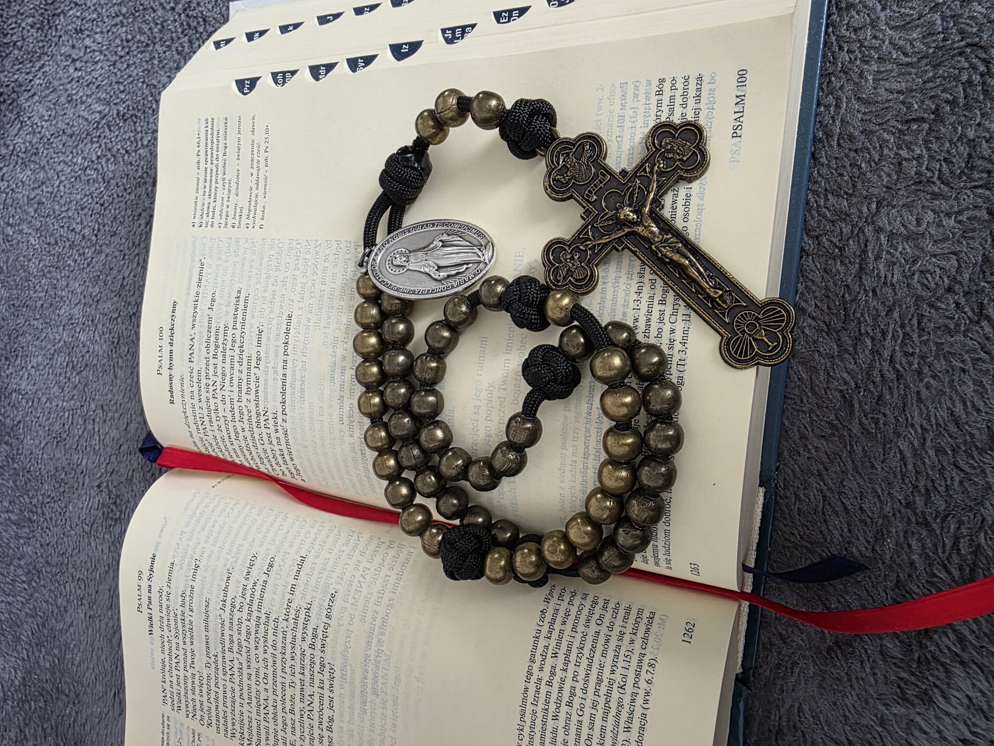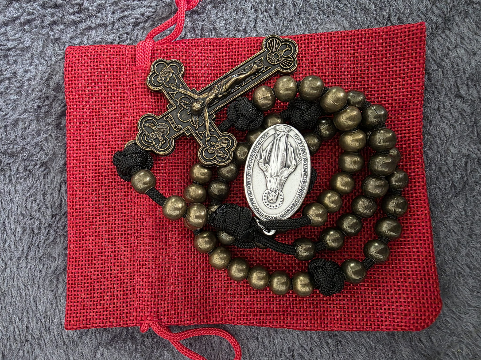 Kolejny przepiękny różaniec ręcznie wykonany! Czarna spadochronowa linka, duży medalik, metalowe kulki 10 mm z wzmocnioną powloką! To daje pewność, że ten różaniec będzie służył bardzo bardzo długo. Zdrowaś Maryjo łaski pełna Pan z Tobą!
